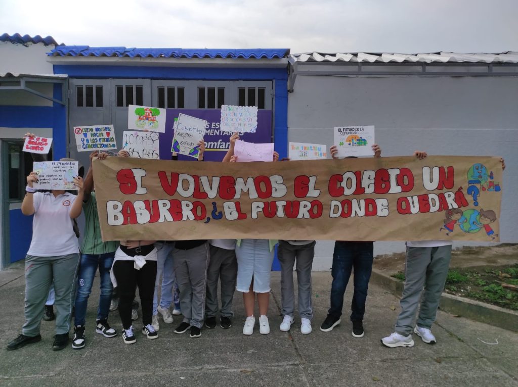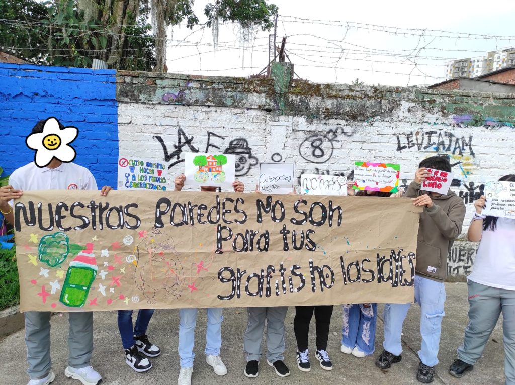 El jueves 26 de octubre en la sede central, los estudiantes protestaron pacíficamente para visibilizar la problemática que la IE Agustín Nieto Caballero debe afrontar día a día, como es el hecho de que sus alrededores se hayan convertido en basurero público y sanitario de mascotas, al igual que sitio de consumo de licor y drogas, donde dejan botellas, paquetes y basura en general.